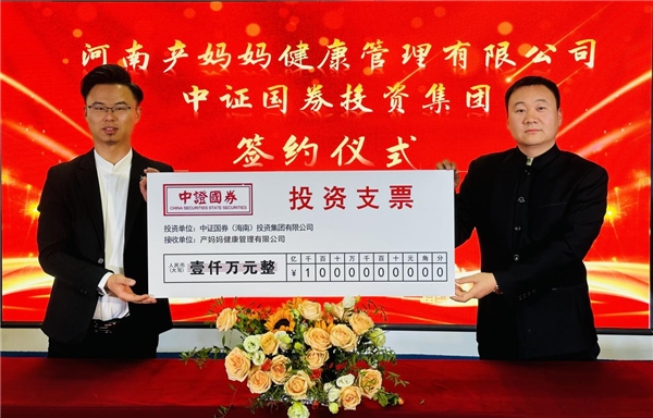 集团董事长屈岗伟先生亲自出席签约仪式,并现场为产妈妈健康投资1千万元人民币,颁发了投资款支票,双方在现场留影合念,共同见证了这一历史性的时刻。此次投资不仅彰显了中证国券对产妈妈健康未来发展前景的高度认可,也预示着产妈妈健康在资本市场的广阔发展前景。
